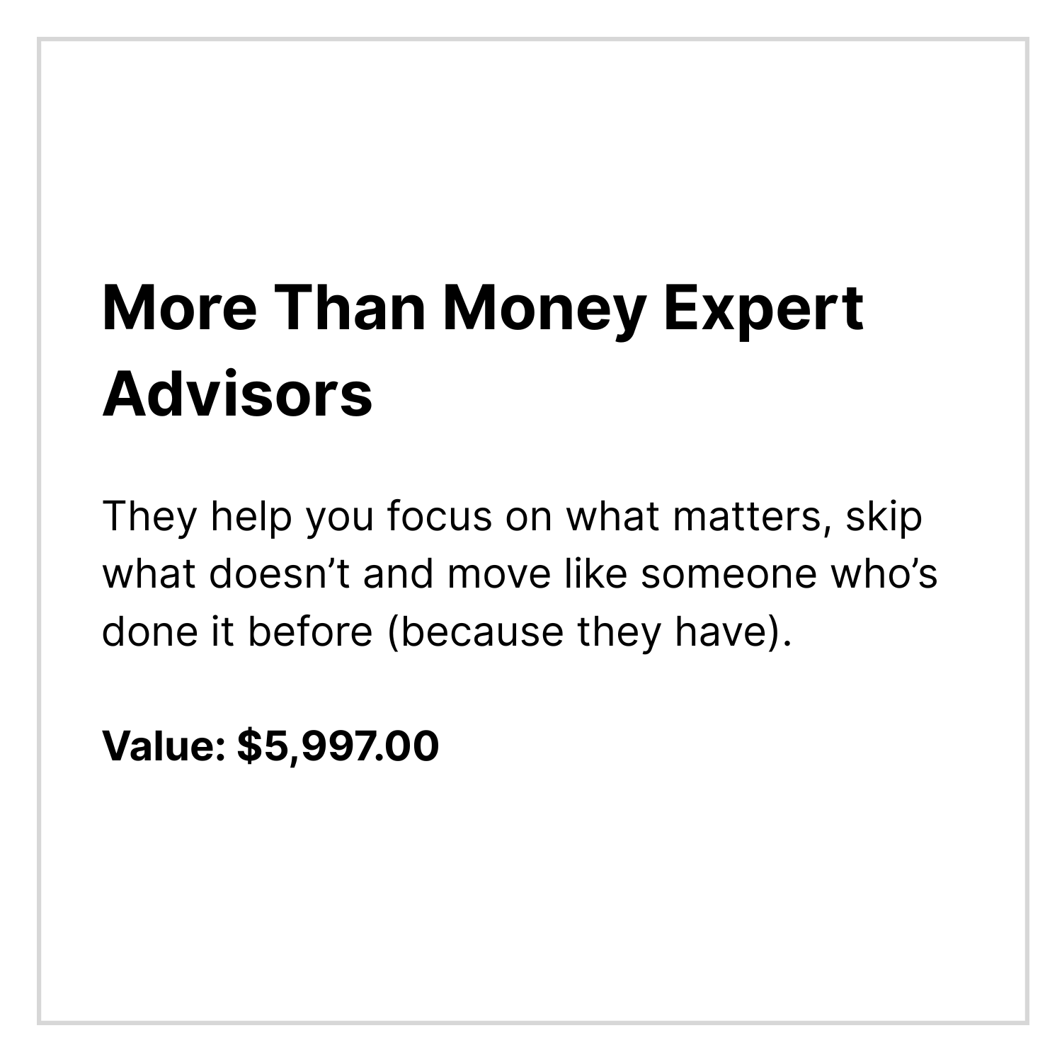 Take control of your financial future with these comprehensive courses and exclusive board of Advisors included when you join More Than Money