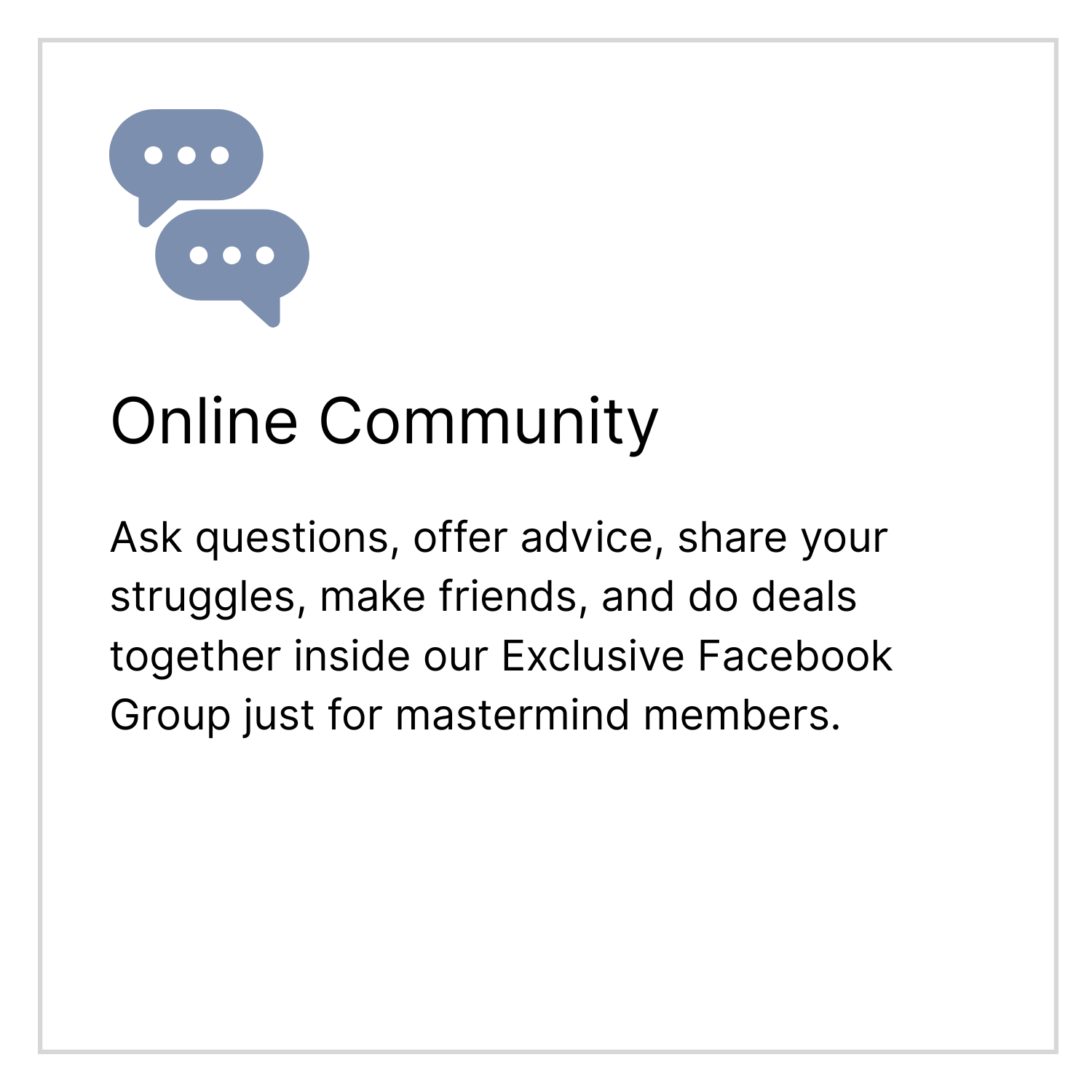 So while there is a video course component, at More Than Money you'll meet LIVE with others in the program every week. You'll have 12 months of access to ensure full support for your first deal!