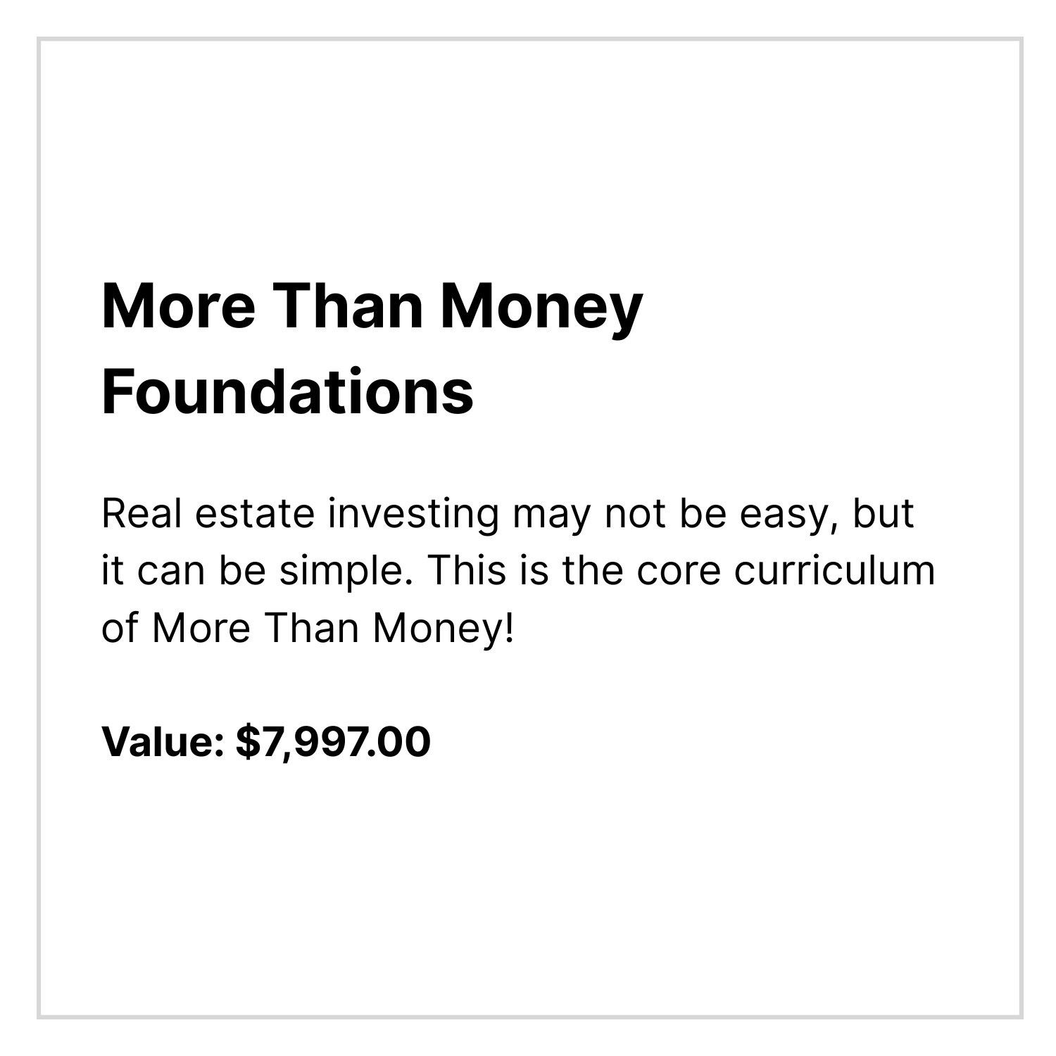 MORE THAN MONEY: 12 MONTH REAL ESTATE INVESTING PROGRAM